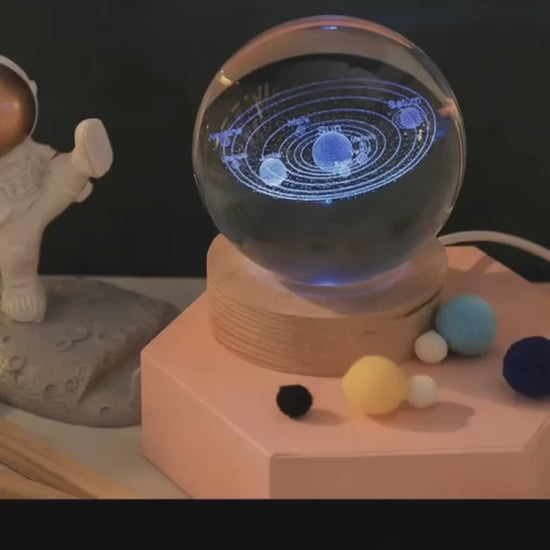 Découvrez cette veilleuse céleste captivante qui fusionne art et technologie. Avec sa base de 8 cm et sa sphère cristalline de 6 cm, elle crée une ambiance magique dans n'importe quel espace. Les 7 teintes RGB vous permettent de personnaliser l'atmosphère selon votre humeur. Conçue en bois noble et cristal premium, cette lampe 3D combine élégance intemporelle et innovation lumineuse. Parfaite pour transformer votre intérieur en univers cosmique enchanteur.